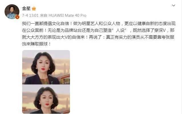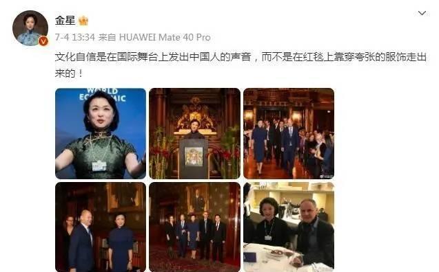 金真诚又说了:文化自信是在海外舞台上发出咱们的声息,而不是在红毯上靠穿夸张的衣饰走出来的。